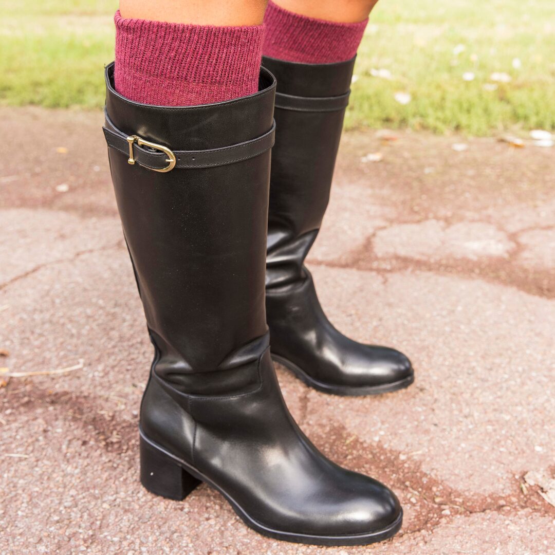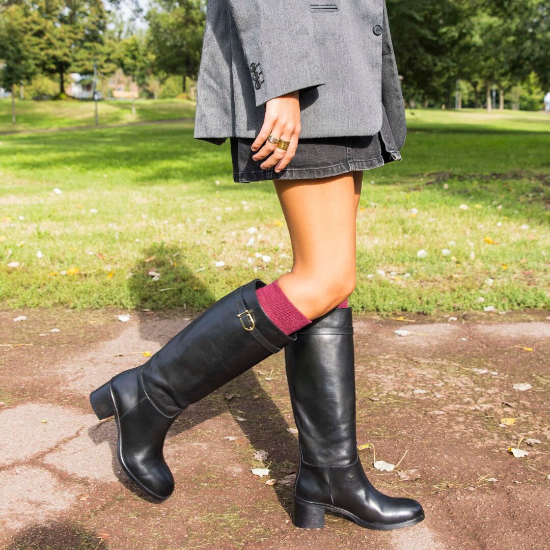 Lo stivale Oscar è quell’equilibrio perfetto tra comodità quotidiana e stile deciso. Realizzato in pelle nera artigianale, con finitura liscia che riflette appena la luce, mantiene una presenza elegante ma discreta. Il tacco da 5 cm offre una lieve elevazione: sufficiente a slanciare la figura, pur restando stabile, pratico e adatto all’uso prolungato.