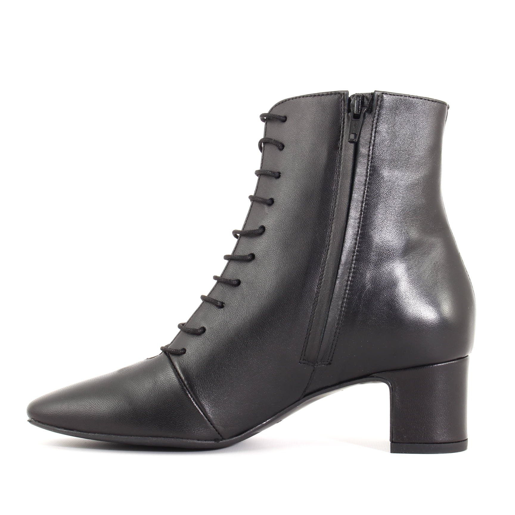 Ecco la scarpa tronchetto donna perfetta per essere alla moda e comoda allo stesso tempo! Questo tronchetto stringato in pelle nera è un vero e proprio must-have nel mondo della calzatura. Il suo tacco largo ti darà quell'extra di altezza che desideri senza sacrificare il comfort. Queste scarpe sono come l'abito nero nel mondo delle scarpe: versatili, eleganti e sempre di tendenza. Quindi, indossa queste meraviglie e preparati a fare girare la testa ovunque tu vada!