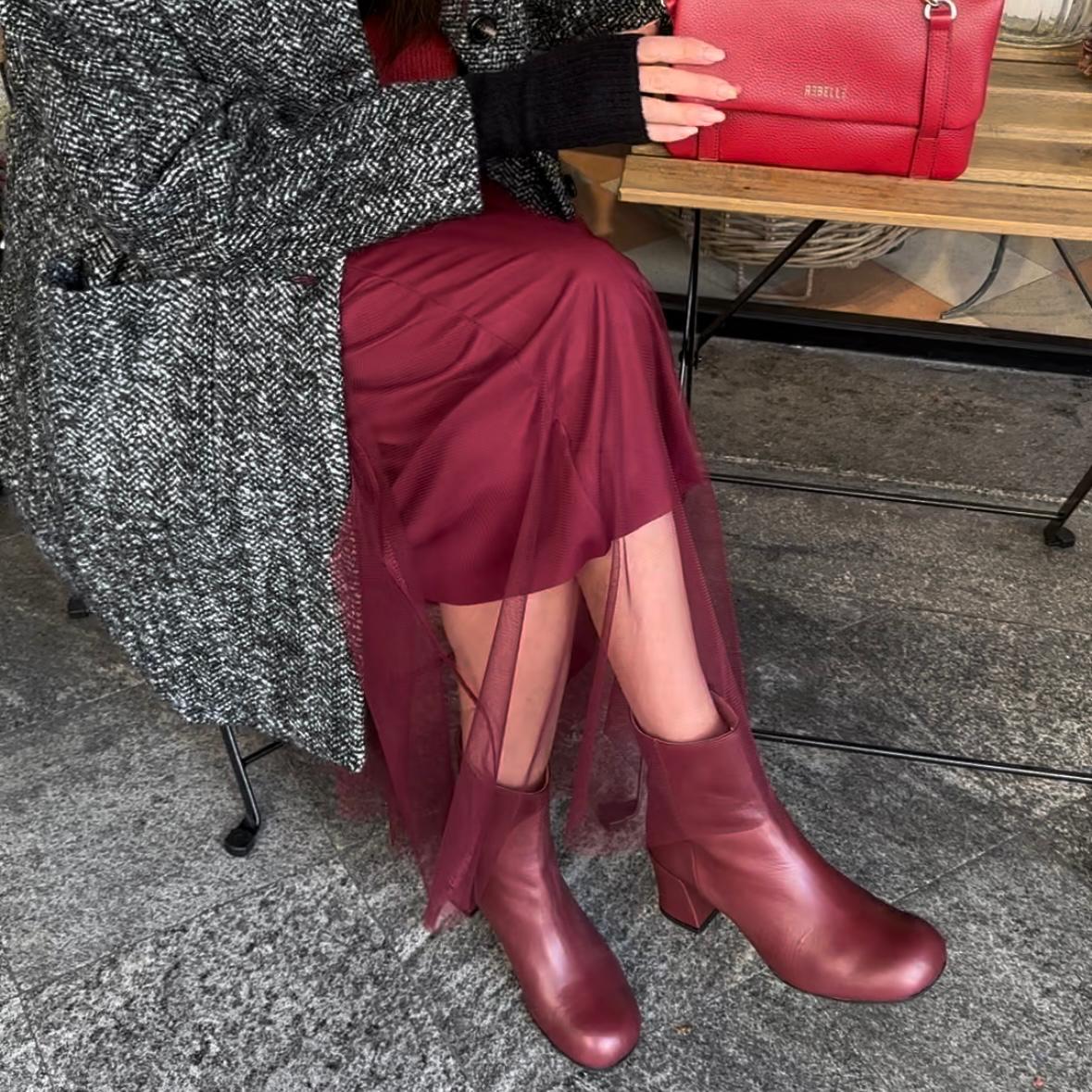 Stivaletto in pelle con tacco medio e cerniera laterale. Pratico e morbidissimo per completare tutti i tuoi outfit invernali. Realizzato artigianalmente in Italia.