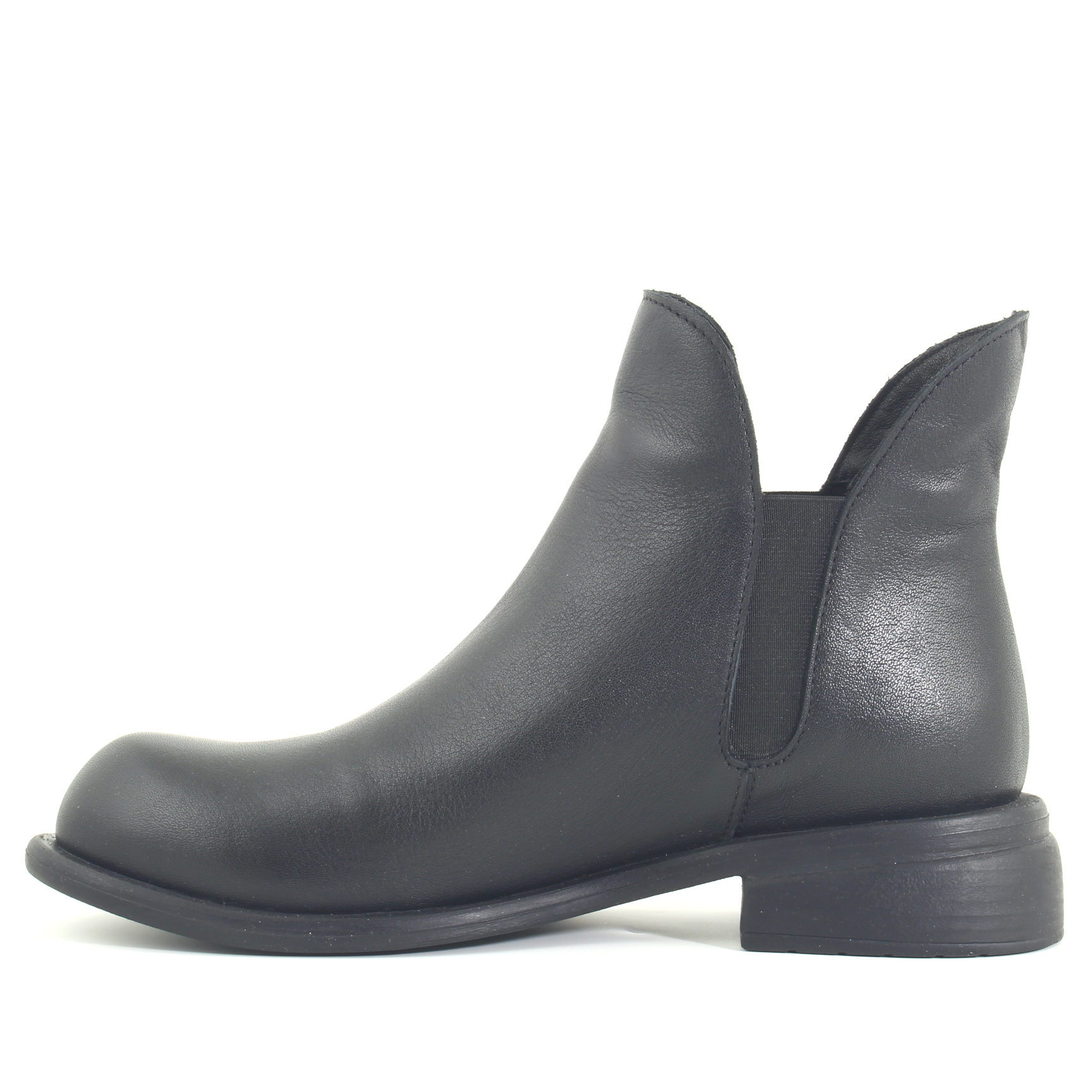 Ecco uno stivaletto che sa come mantenere il ritmo senza perdere il colpo! Realizzato artigianalmente da Le Walterine, questo gioiellino in pelle nera ha un elastico laterale che ti farà pensare: "Perché complicarsi la vita con i lacci?". È come il ninja delle scarpe: scivola al tuo piede in un attimo, pronto a seguirti in ogni avventura urbana con un tocco di eleganza minimalista. Insomma, è lo stivaletto che dice: "Sono qui per darti stile, ma senza stress!".