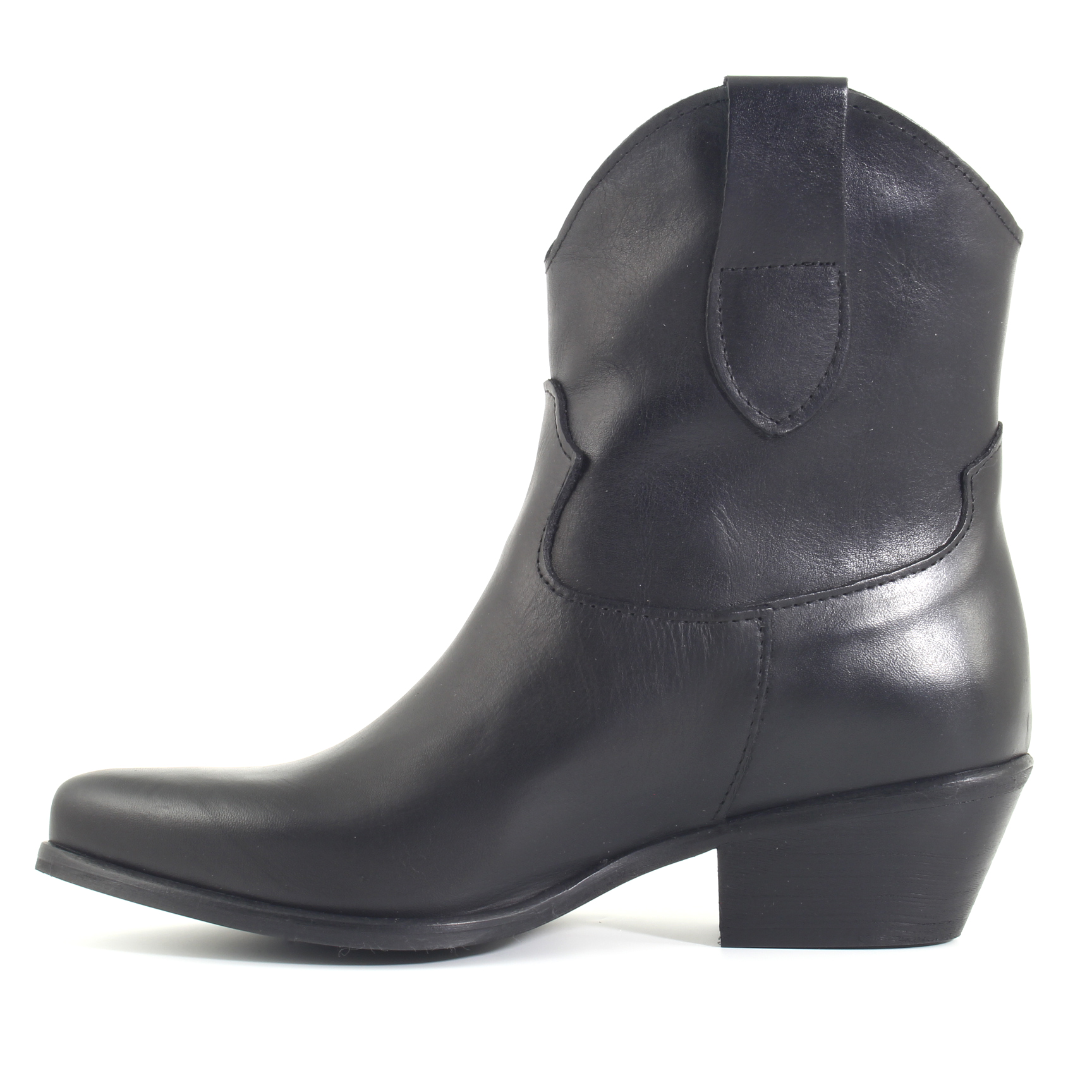 Ecco uno stivaletto texano da donna in pelle nera che grida "stile" con un pizzico di ribellione! Questo stivaletto è un classico intramontabile con un tocco western. La forma texana dello stivaletto con il tallone inclinato conferisce un'aura di avventura senza tempo. È l'accessorio perfetto per chi desidera un tocco di carattere nel proprio look. Semplicemente irresistibile!