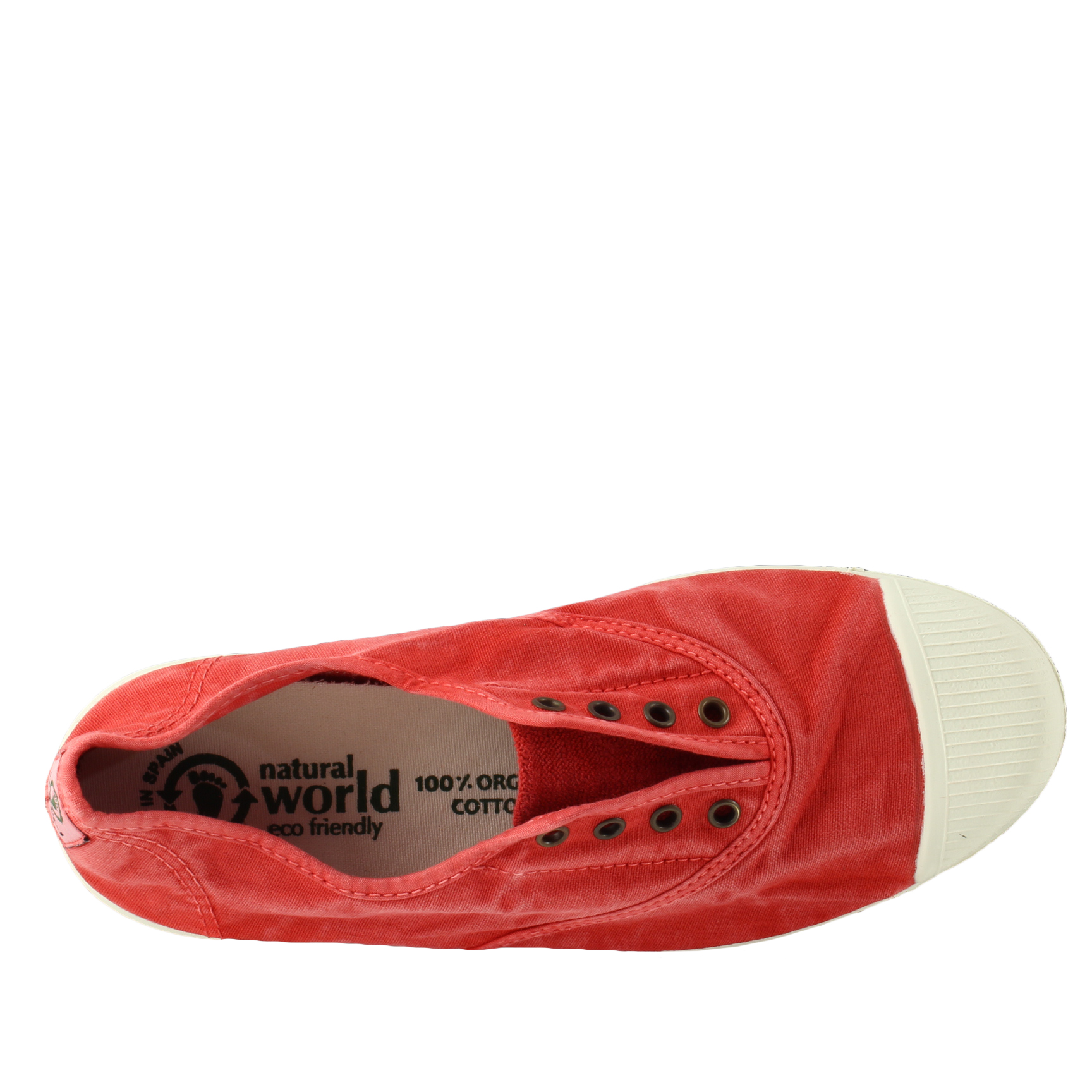 Le sneaker Natural World sono costituite principalmente da cotone e gomma. Il cotone proviene dalla Spagna, con certificazione Made in Green, la quale attesta che si tratta di una produzione priva di sostanze tossiche per la salute, senza l'uso di lavoro minorile, ecologica al 100%. La gomma, ottenuta direttamente dall'albero della gomma, è della migliore qualità e offre comfort e flessibilità nel camminare. L'antico sistema di produzione, rivisitato e potenziato dai creatori di Natural World, consiste nella saldatura dei due materiali, cotone e gomma, senza l'uso di alcun prodotto chimico o colla. Stringhe in dotazione nella scatola.