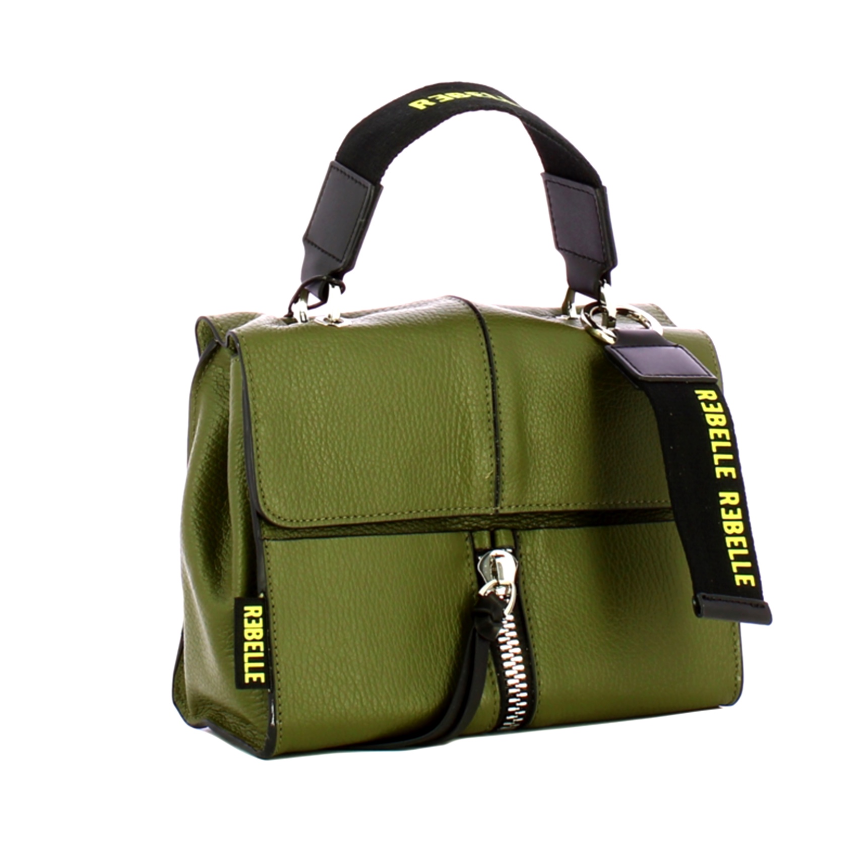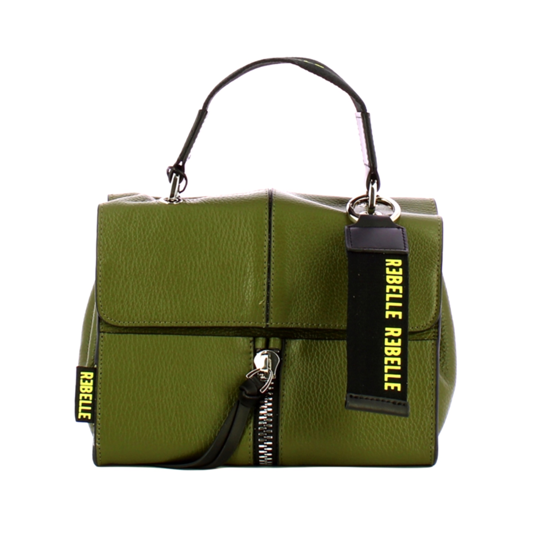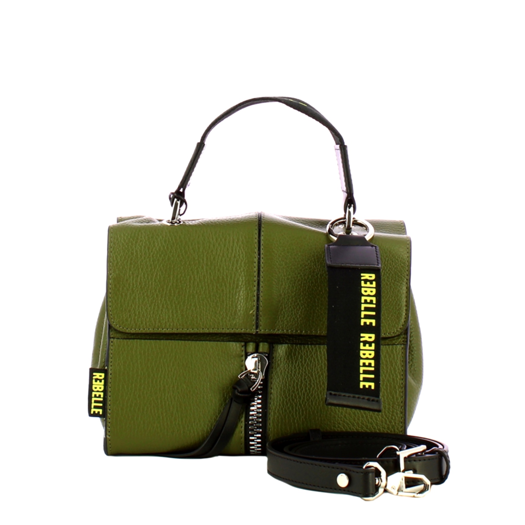 Mini Bag Chloe Satchel Olive Rebelle, compatto e stiloso modello in vera pelle made in Italy. Manico superiore a nastro logato, chiusura con patta a scatto e tracolla regolabile rimovibile. Interno foderato provvisto di due tasche con zip.