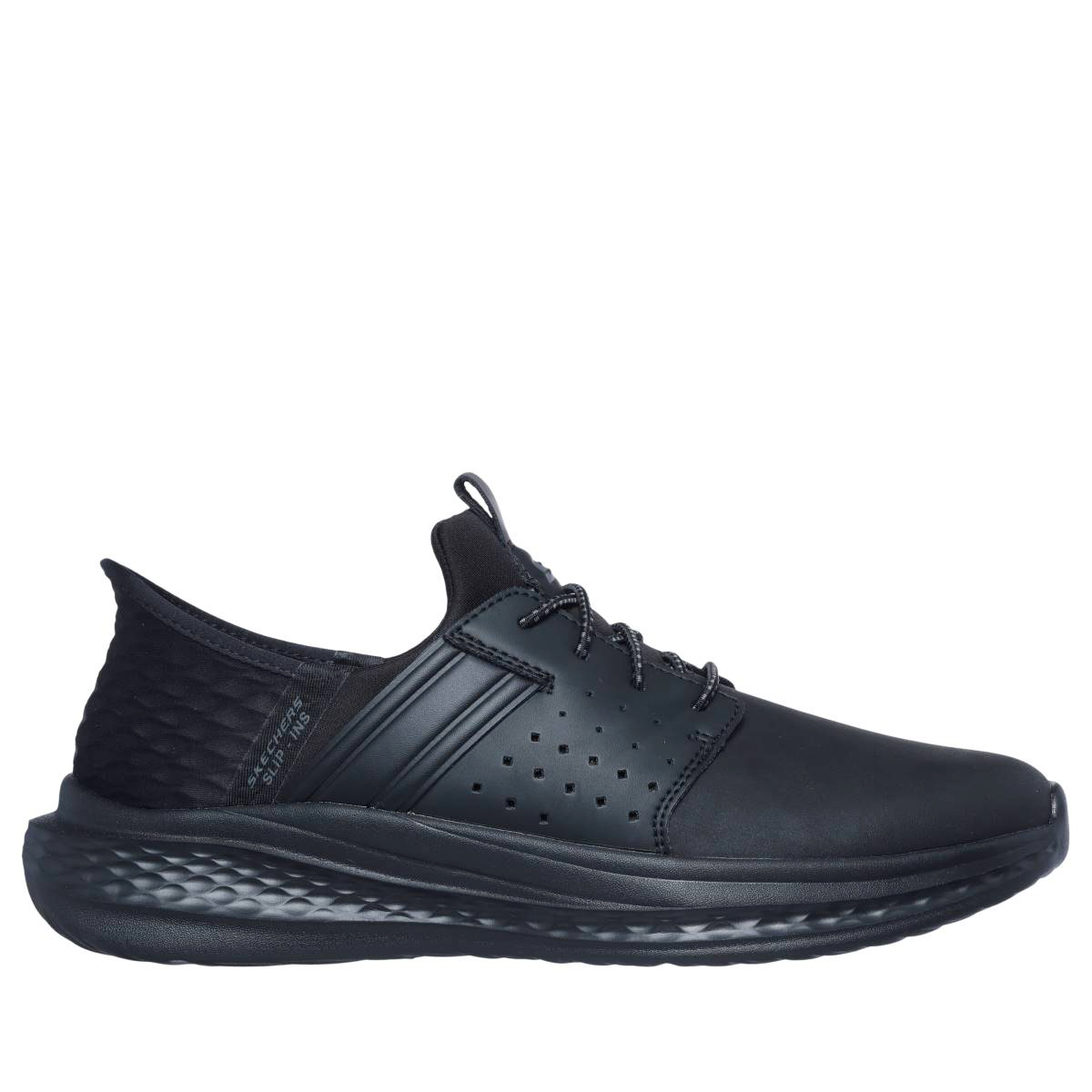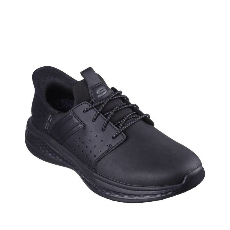 Eleganza sportiva e comfort esclusivo si fondono in Skechers Slip-ins® Relaxed Fit®: Slade - Zachary. Con l'esclusivo design Heel Pillow™, questo modello con allacciatura elasticizzata presenta una tomaia in pelle e materiale tecnico, una soletta Skechers con filtro in carbone attivo e ammortizzazione Skechers Goga Mat.