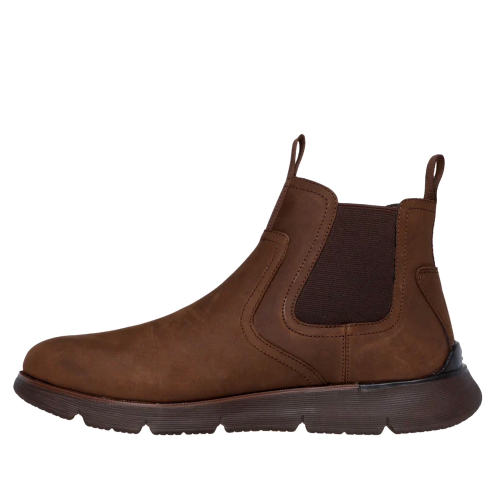 Lo stile moderno incontra il comfort esclusivo in Skechers Augustino - Paulo. Questo stivaletto Classic Fit™ presenta una tomaia in pelle con doppi pannelli in gore, una soletta Skechers Air-Cooled Memory Foam® infusa di carbone e un arco Skechers Goga Mat Arch™ per un supporto aggiuntivo.