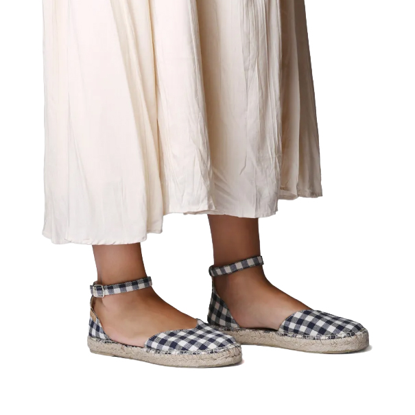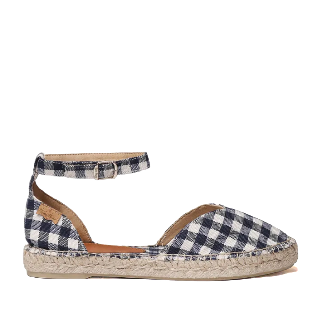 NURI-VH è una espadrilla piatta da donna con stampa vichy. È realizzata in tessuto di alta qualità e presenta un cinturino regolabile alla caviglia con chiusura a fibbia, che offre una calzata comoda e sicura. La suola in juta ha un’altezza di 1,5 cm e dispone di una base in gomma antiscivolo, che garantisce una camminata flessibile e stabile. Il sottopiede imbottito aggiunge un ulteriore livello di comfort. Questo modello è cucito a mano in Spagna. Calza la misura abituale; se sei tra due numeri, ti consigliamo di scegliere quello più grande.