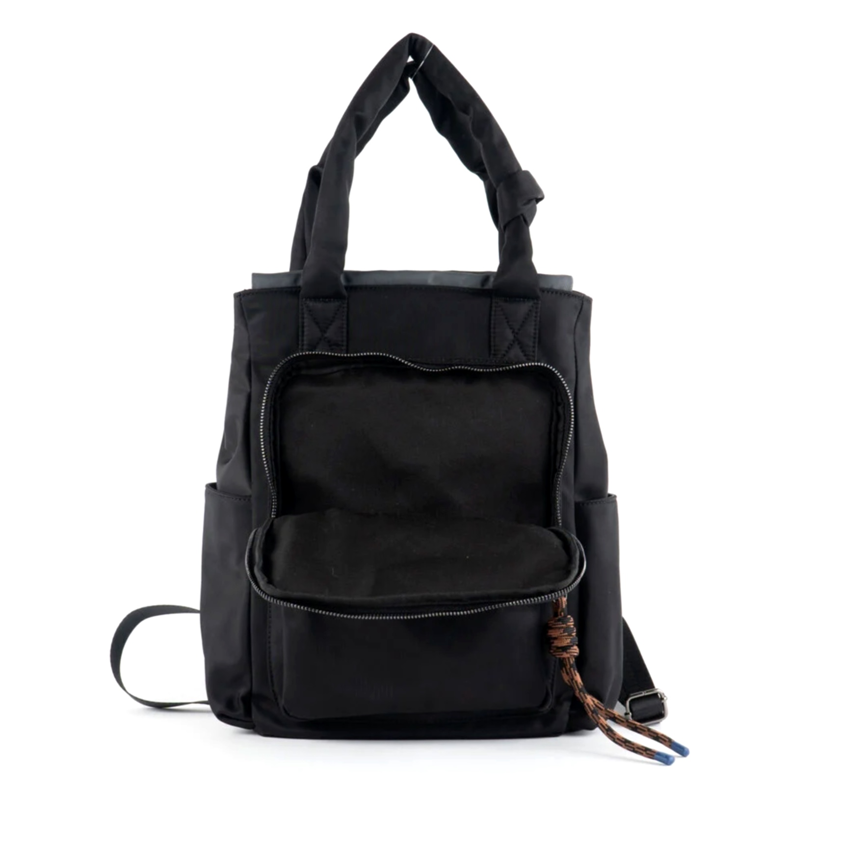Zaino in nylon con possibilità di utilizzo come borsa a tracolla. Spallacci posteriori imbottiti e regolabili per un comfort extra e tracolla con nodo. Chiusura con cerniera in metallo e tiretto in metallo personalizzato. Include doppie tasche interne, una delle quali con chiusura a cerniera, e uno scomparto per laptop. Fodera interna tono su tono. Ampia tasca esterna frontale con chiusura a cerniera e due tasche laterali. Targhetta metallica con marchio all'esterno.