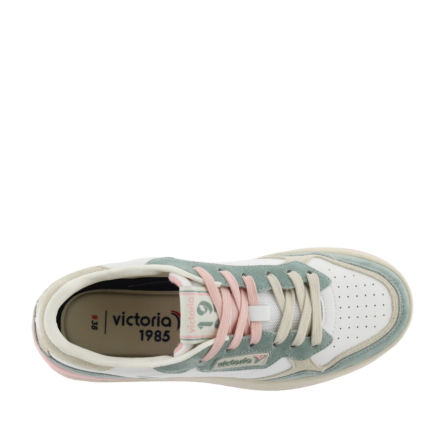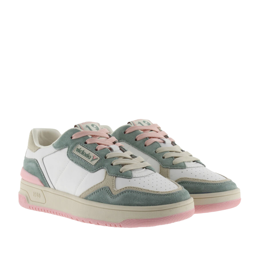 Scarpe sportive unisex realizzate in pelle con dettagli in nylon. Logo anni '80 di victoria incorniciato sul lato. Chiusura con doppio laccio. Comoda suola bicolore in gomma con stabilizzatore sul tallone. Include anche una soletta ergonomica che si adatta alla forma del piede, garantendo una sensazione di comfort.