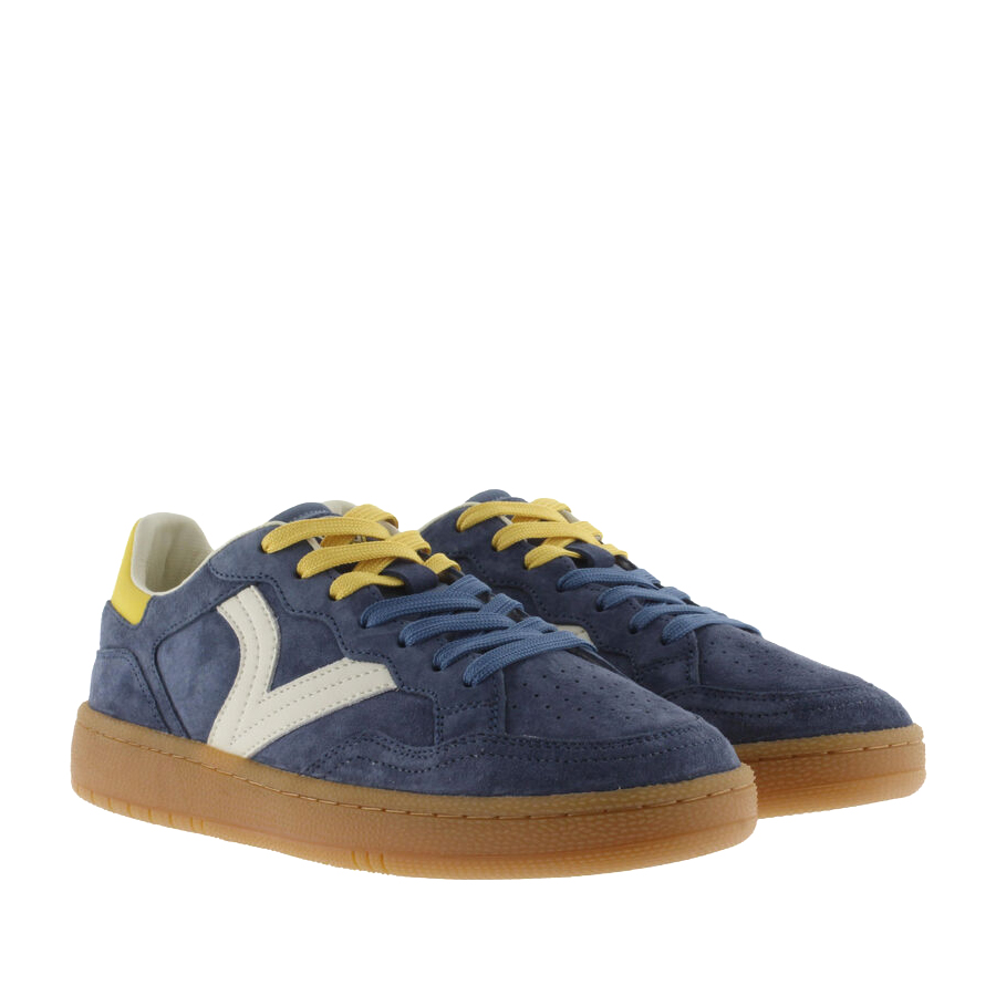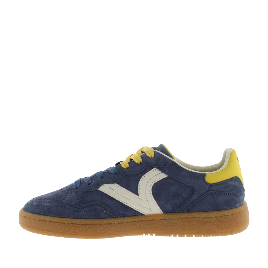 Sneakers sportive unisex realizzate in camoscio effetto "velour" con dettagli in PU. V retro laterale in colori a contrasto. Chiusura con lacci bicolore. Etichetta in gomma sulla talloniera. Fodera in microfibra traspirante e suola traslucida color caramello in gomma 100% naturale. Inoltre, includono una soletta ergonomica che si adatta alla forma del piede e regala una sensazione di comfort.