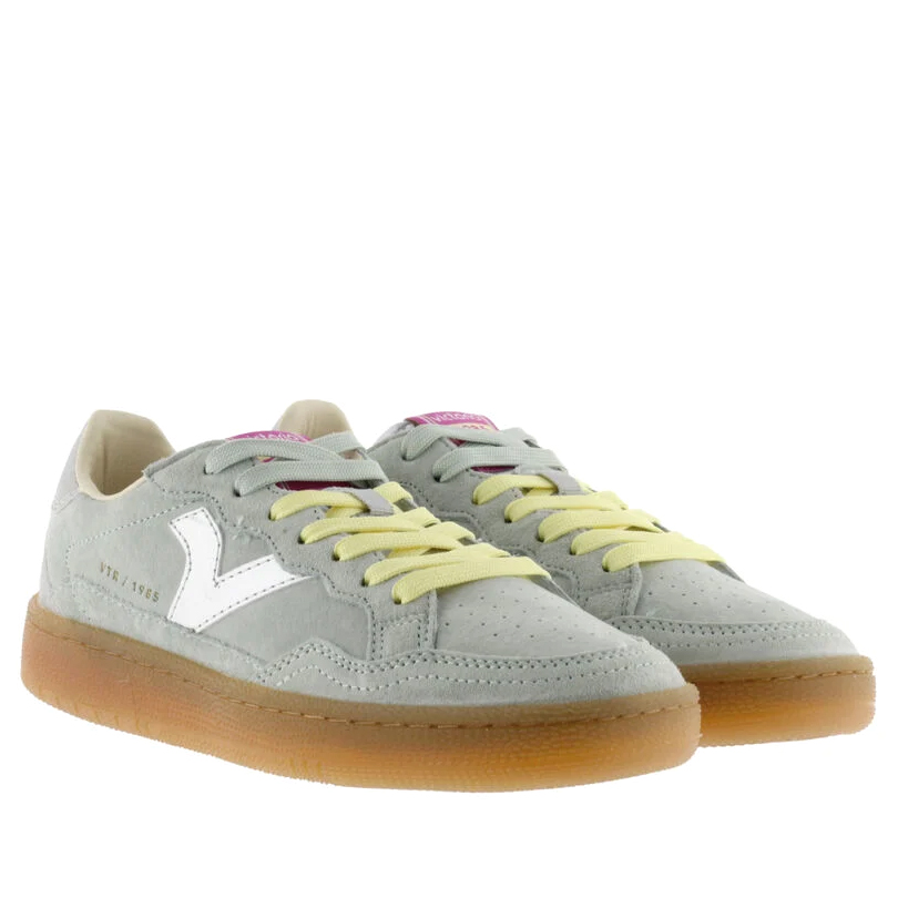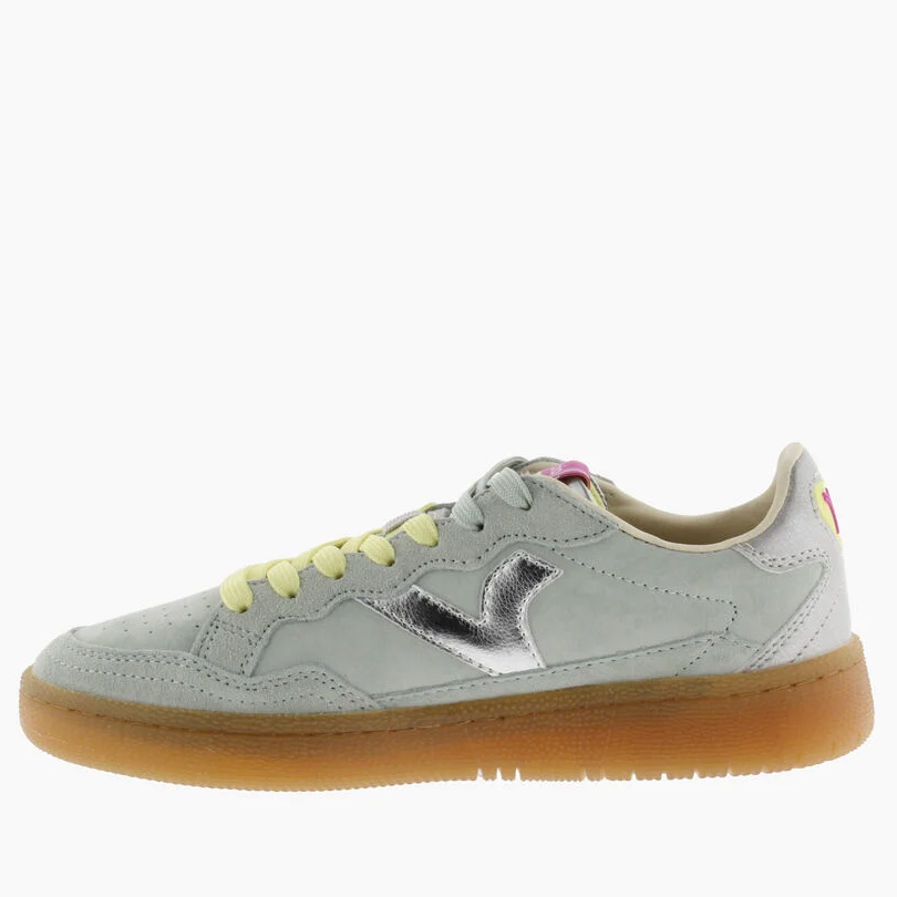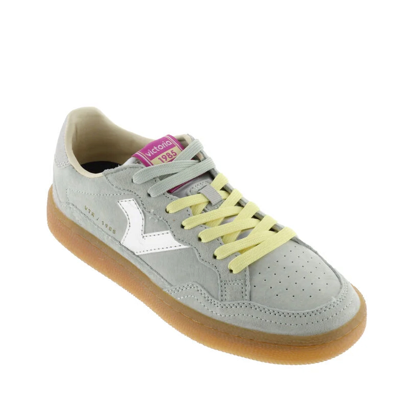 Sneakers sportive unisex realizzate in camoscio effetto "velour" con dettagli in PU. V retro laterale in colori a contrasto. Chiusura con lacci bicolore. Etichetta in gomma sulla talloniera. Fodera in microfibra traspirante e suola traslucida color caramello in gomma 100% naturale. Inoltre, includono una soletta ergonomica che si adatta alla forma del piede e regala una sensazione di comfort.